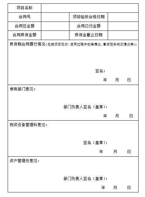 湖南工商大学建设项目质保金支付审批表